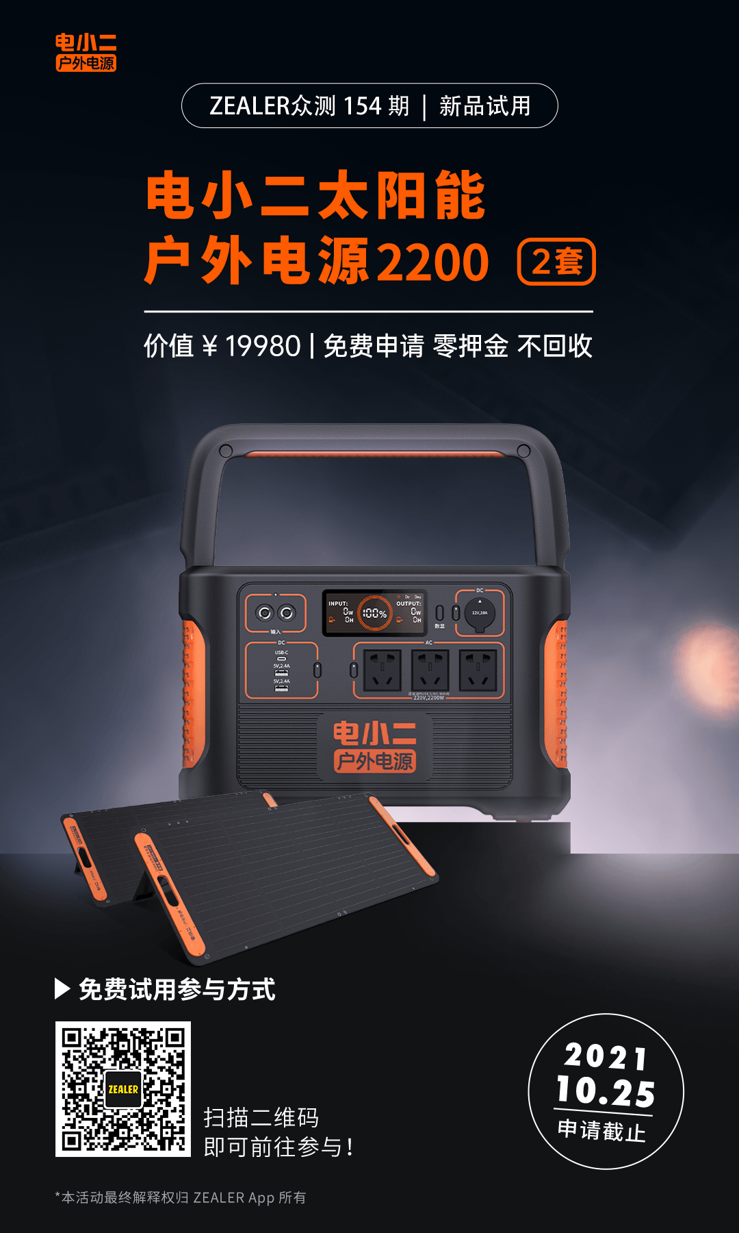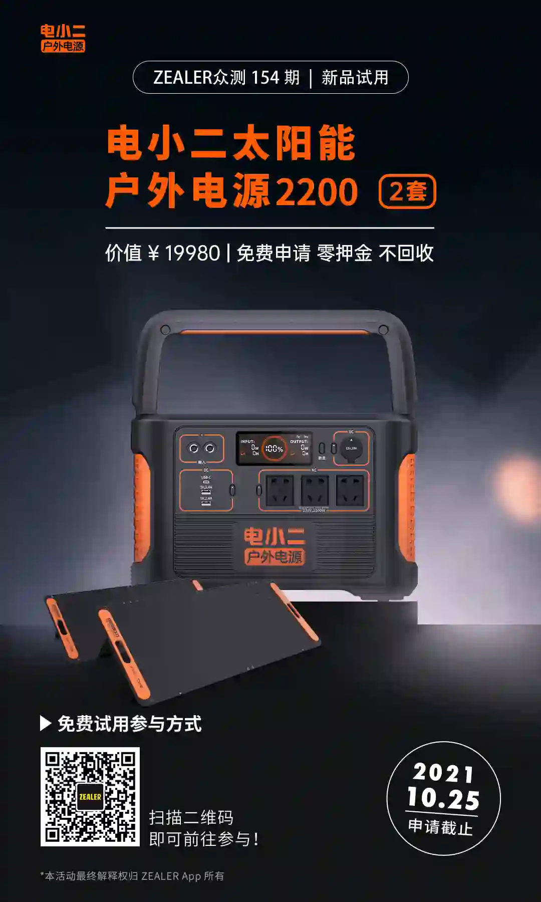 电小二太阳能户外电源2200 现已上线 ZEALER 众测,扫描文章顶部图片中二维码或戳文章底部左下角「阅读原文」即可前往参与本次众测活动。