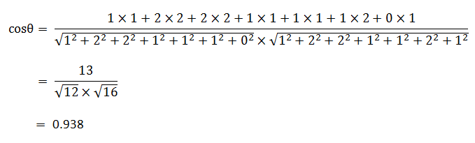 数学家已经证明,余弦的这种计算方法对n维向量也成立。假定A和B是两个n维向量,A是 [A1, A2, ..., An] ,B是 [B1, B2, ..., Bn] ,则A与B的夹角θ的余弦等于: