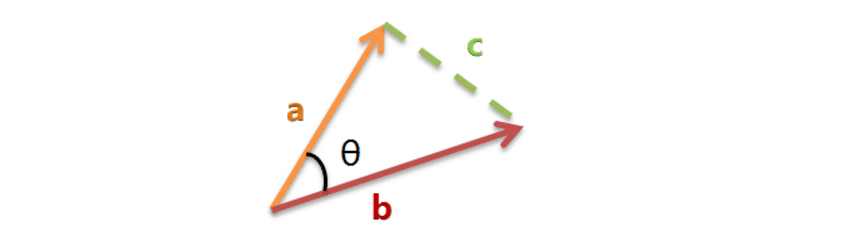 以二维空间为例,上图的a和b是两个向量,我们要计算它们的夹角θ。余弦定理告诉我们,可以用下面的公式求得: