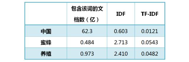 显然不是这样。因为"中国"是很常见的词,相对而言,"蜜蜂"和"养殖"不那么常见。如果这三个词在一篇文章的出现次数一样多,有理由认为,"蜜蜂"和"养殖"的重要程度要大于"中国",也就是说,在关键词排序上面,"蜜蜂"和"养殖"应该排在"中国"的前面。