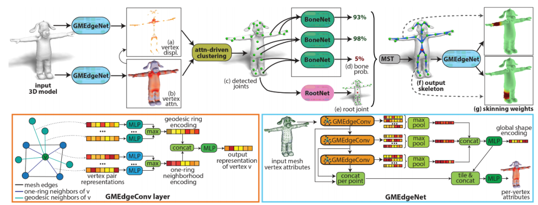 最后,GMEdgeNet 模块基于预测到的骨架生成蒙皮权重。