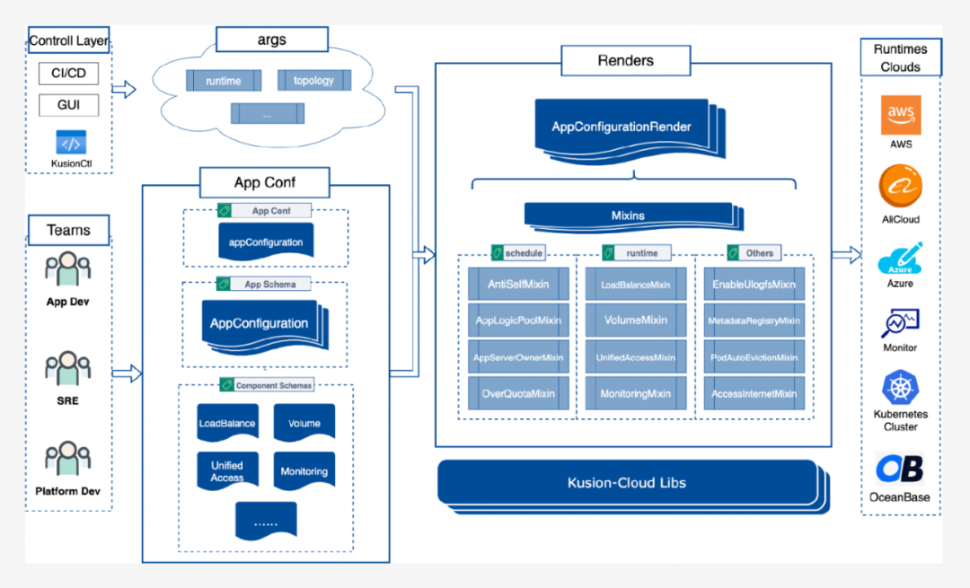 在蚂蚁的平台工程实践中,我们强化了客户端的工作方式,将围绕应用运维生命周期的模型、编排、约束和策略稳定、可扩展性,通过专用语言 KCL 编写维护在共享仓库