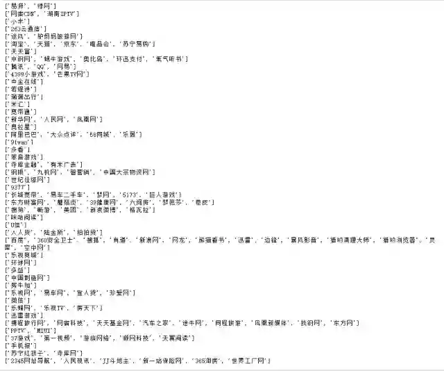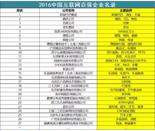 笔者在这里选取2016年入选的互联网百强企业,名单如下: