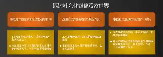 在现今数据爆炸、信息质量良莠不齐的互联网时代,我们无时无刻不身处在互联网社会化媒体的“信息洪流”之中,因而无可避免的被它上面泛滥的信息所“裹挟”,也就是说,社会化媒体上的信息对现实世界中的每个人都有重大影响,社会化媒体是我们间接了解现实客观世界和主观世界的一面窗户,我们每时每刻都在受到它的影响。关于“社会化媒体”方面的内容,请参看《干货|如何利用Social Listening从社会化媒体中“提炼”有价值的信息?》,以下内容也摘自该文: