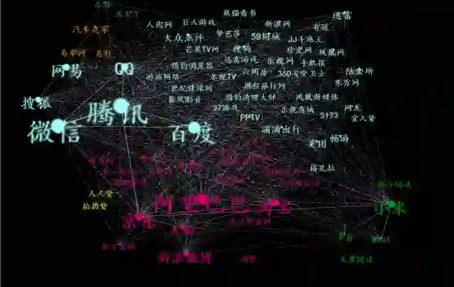 此外,淡蓝系(腾讯、微信、百度、QQ、网易、搜狐等)和洋红系(阿里巴巴、淘宝、京东、新浪微博、天猫等)这两个簇群中,品牌与品牌之间的关系就比较复杂了,子母公司、兄弟品牌、跨界合作、竞对关系、跨界竞争、融资及兼并,上述情况,在这两类簇群中或可兼而有之。