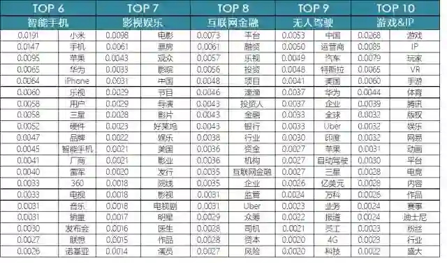 行业领域类:行业、电商、游戏、投资、广告、人工智能、智能手机等;