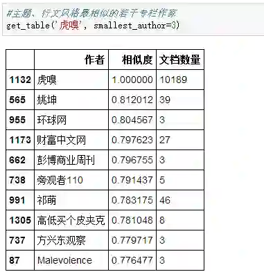 与其写作主题类似的作者除了一些个人自媒体人,还包括一些媒体,如环球网、财富中文网、彭博商业周刊等。从前面的分析中可以推测出,他们在上述3个话题上的发文量也比较大。