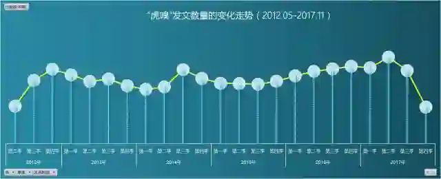 此外,一头(2012年第二季)一尾(2017年第四季)因为没有统计完全,所以发文数量较小。