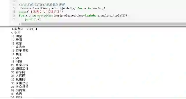 对于上述百强互联网公司的旗下品牌名录,笔者利用上面训练出来的词向量模型,用来进行下面的词聚类和词分类。