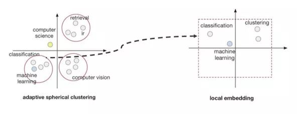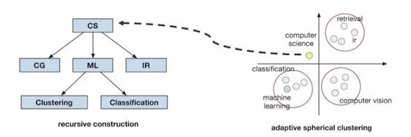 韩家炜说,自动建立层级分类其实「挺难的」。他们经过多种尝试后,提出了两种有效的方法:Adaptive Spherical Clustering 和 LocalEmbedding。