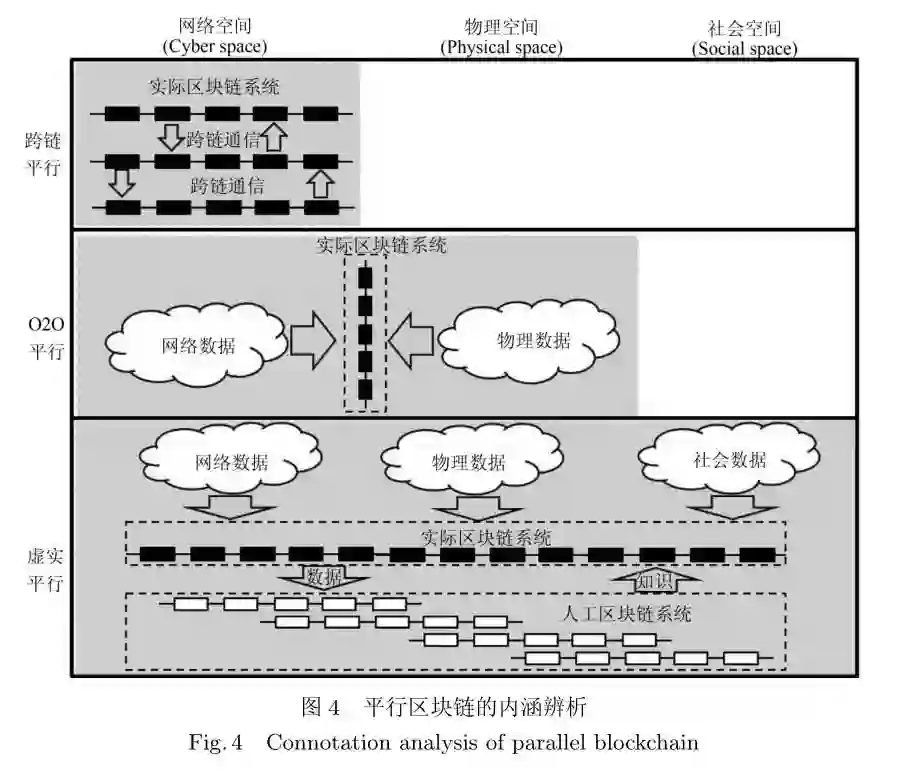 相对应地,平行区块链系统中,每一个实际区块链系统都会构建与之共生演化的三类人工形态的区块链系统,即