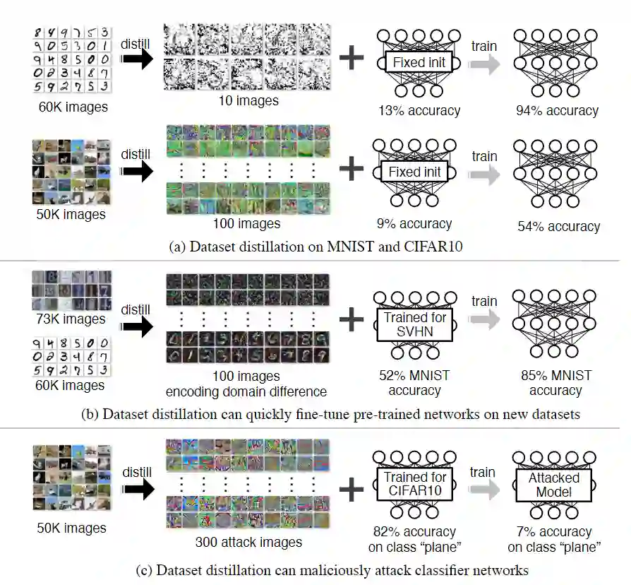 除模型的直接表示外,另外也有工作试图通过样本在模型训练中间的表现,用来衡量样本的模式,例如样本的遗忘事件,样本对模型更新参数的贡献等(具体参见往期推文:我删了这些训练数据…模型反而表现更好了!?)。另外就是数据集蒸馏,也就是将大规模的数据蒸馏到小规模的人工数据上。