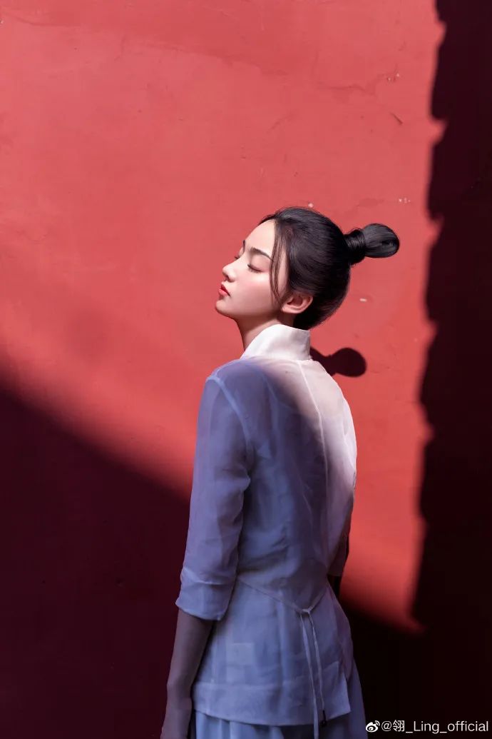 丹凤眼,柳叶眉,瓜子脸,丸子头,复古风的服装,这个用 AI 技术打造的虚拟偶像翎,无论容貌还是衣着打扮,都被赋予浓浓的中国特色。她的名字来自于京剧花翎中的翎,她的爱好是京剧、毛笔书法与太极。