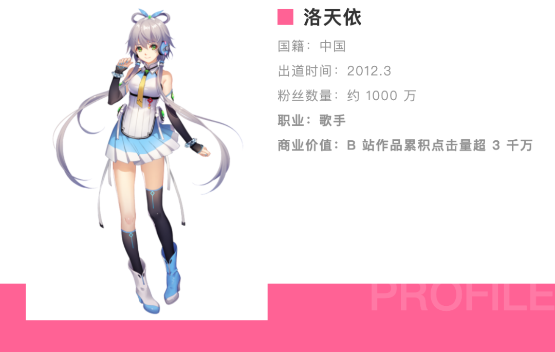 2012 年 3 月 22 日,洛天依首次面世。出道至今,她已收获近一千万粉丝,品牌代言不断,还多次与知名歌手、音乐家同台演出。