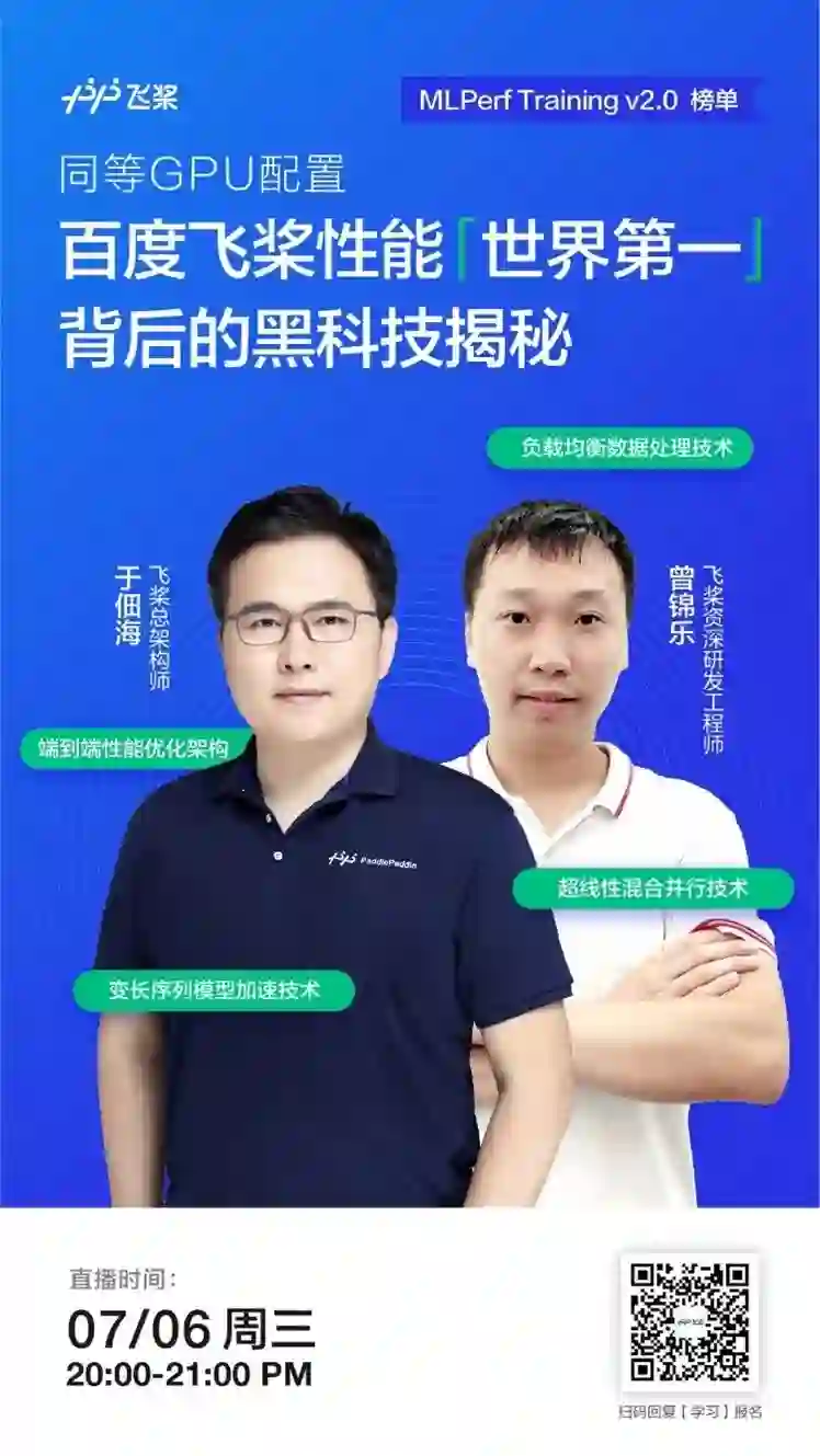 7 月 6 日(星期三)20:00,飞桨总架构师于佃海和飞桨资深研发工程师曾锦乐将通过直播