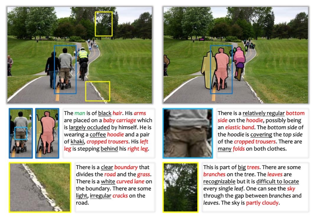 1. 按需视觉识别只是图文跨模态识别任务的一个变种。诚然,我们的任务和算法都建立在跨模态的基础上,但是我们的核心目的是探索一种更彻底的视觉识别方法,在此过程中语言起到了辅助作用。与 visual grounding 任务相比,我们不仅局限于使用一句话来 refer 图像中的某个物体,而是希望以一种结构化(基于知识库)的定义方式,使得标注和识别算法有能力识别无限细粒度的语义单元。