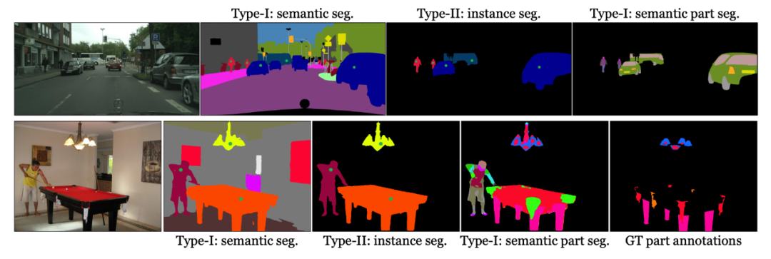 1. 第 1 类 request:整体到部分的语义分割(输入实例、输出语义)。给定某个实例,以及该实例包含的部件列表,将该实例语义级分割为部件。注意:每张图像本身就是一个实例,而其中的第一级语义概念是统一定义的。因此,标注者或者算法在每张图像上处理的第一个request,必然是第1类request。