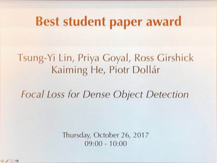 8月的 Focal Loss for Dense Object Detection 获得了最佳学生论文奖。