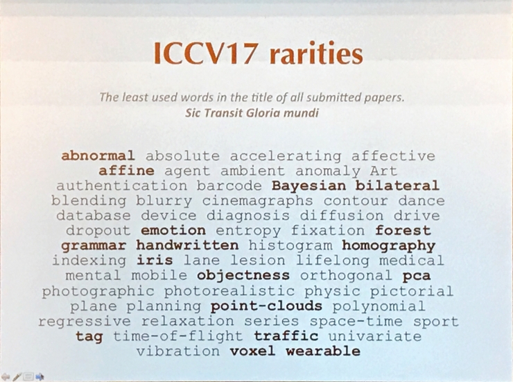 在Opening Remarks后,很快进入第一组 Oral 和 Spotlight 论文展示环节。ICCV2017的精彩内容刚刚开始,请继续关注AI 科技评论的后续报道!