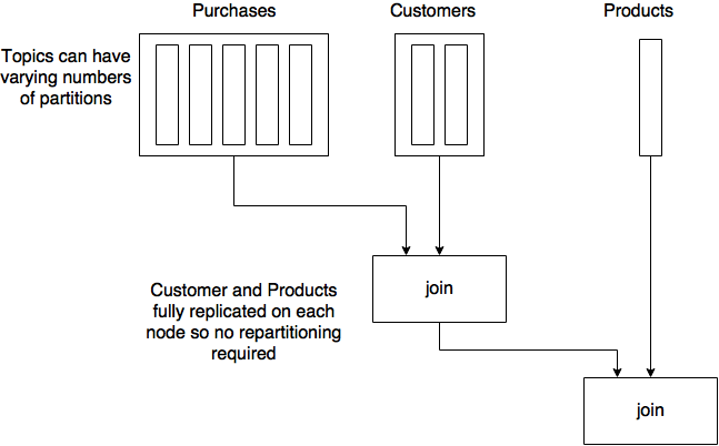接着通过将orderStream与userTable进行Join,来获取订单用户所在地。由于二者对应的Topic的Partition数相同,且Key都为用户名,再假设Producer往这两个Topic写数据时所用的Partitioner实现相同,则此时上文所述Join条件满足,可直接进行Join。