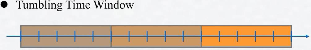 Tumbling Time Window 该窗口定义如下图所示。可以认为它是Hopping Time Window的一种特例,也即Window size和Advance interval相等。它的特点是各个Window之间完全不相交。