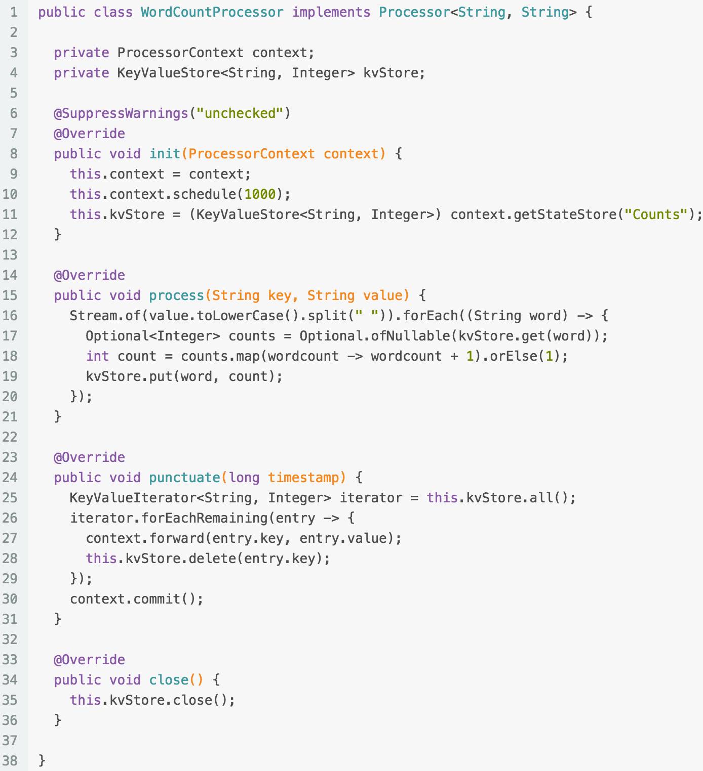下面是一个Processor的示例,该Processor实现了Word Count功能,且每秒输出一次计算结果。