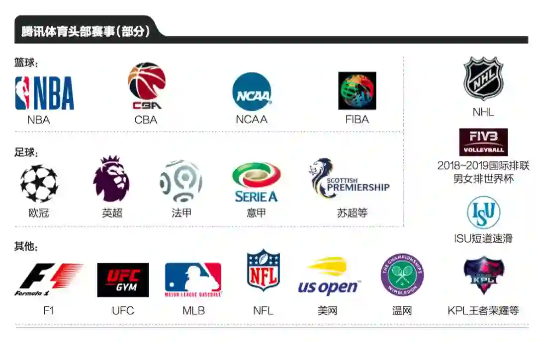 数据显示,在获得NBA独家版权之后,腾讯体育用户数量增长到了四个多亿,目前可免费观看的比赛有400场,收费观看的比赛有900场。而除了NBA、CBA等篮球赛事外,腾讯体育也拿下了F1、UFC、土耳其女排联赛、KPL王者荣耀等各细分领域的赛事版权。