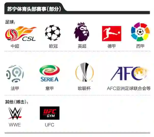 可以确定的消息是,苏宁体育用了13.5亿元获得了2017年~2018年中超的新媒体转播权,从后期孙宏斌的抱怨来看,乐视体育正是因为中超造成了13个亿的亏损。而在乐视体育后期,苏宁进军体育产业,对足球版权发起猛烈攻势,短时间内便把大量的足球资源一网打尽。