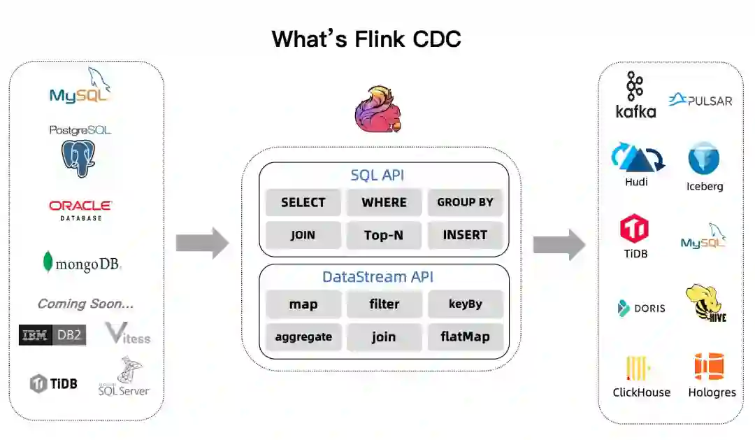 另一方面,我比较关注的是 Flink CDC (Change Data Capture) 项目。在 Flink CDC 发布之前,我们在 Flink 上实现了同步 MySQL,SQLServer,TiDB 等业务库数据的实时接入分发平台。今年的 FFA(Flink Forward Asia)大会上,云邪老师分享的 Flink CDC 主题给了我很大的启发,我认为 Flink CDC 需要做的那些易用性提升(Schema 变更,库级数据入湖)都是我们公司的数仓及业务线用户亟需我们去解决的问题。