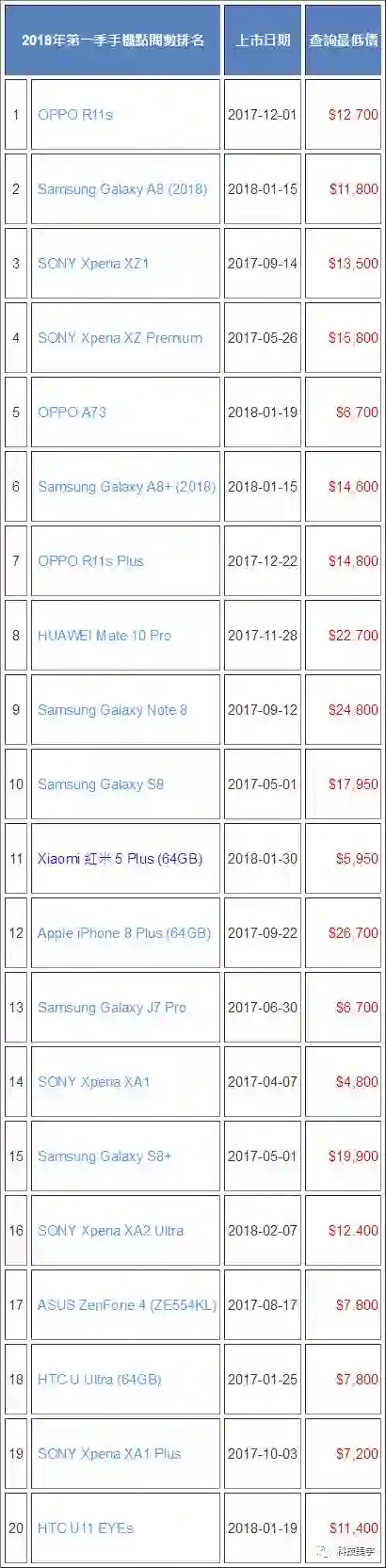 台湾媒体ePrice比价王今天公布了2018年第一季度该网站热门手机排行榜,结果内地手机大发神威,尤其是OPPO出尽了风头。