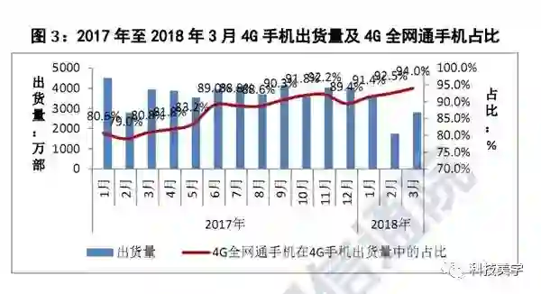 3月份4G手机出货量2808.5部,同比下降28.7%,其中4G全网通手机占比94.0%。4G上市新机型67款,同比下降40.2%。