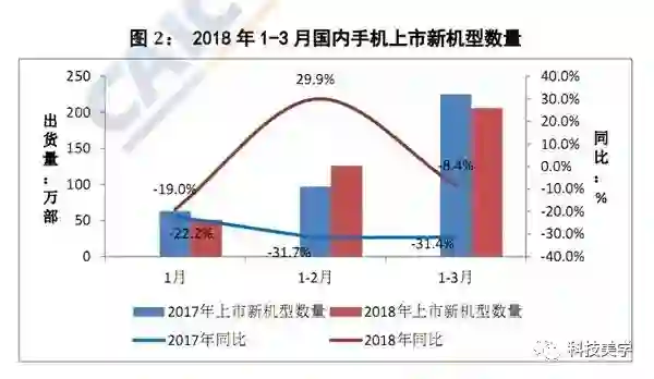 前三月新智能手机总计158款,同比减少15.1%,其中安卓手机152款。