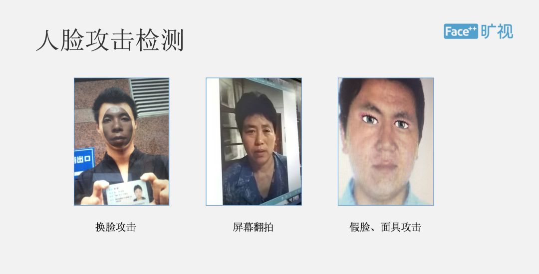 除了活体检测之外,我们还提供了一套叫做 FMP 的攻击检测,可以有效去识别翻拍,面具攻击,这是在我们的云端完成的。这是我们基于大量的人脸数据训练出一套叫 FMP 的深度神经网络,并且根据线上的数据进行实时返回和调整,不断去识别准确率,这也是我们整个活体检测里一个最重要的技术难点。