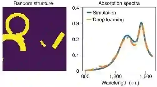 模拟的随机银纳米结构。借助RNN,该网络能够预测800 nm至1,700 nm结构的吸收,预测结果与全波仿真结果高度一致。