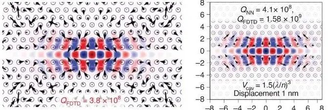 右图:优化的光子晶体,Q因子提高至1.58×10
