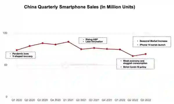 从多方调研机构的数据来看,今年手机市场一直处于低迷状态,在持续的下滑中。根据 Counterpoint 日前刚刚公布的 2022 年 Q3 国内手机市场的数据报告,该季度智能手机销量同比下降 12.4%。