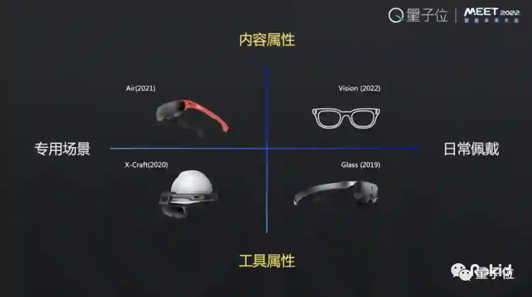 横轴代表以穿戴性、佩戴性为出发点去衡量,从专用场景到日常佩戴(从左到右)。