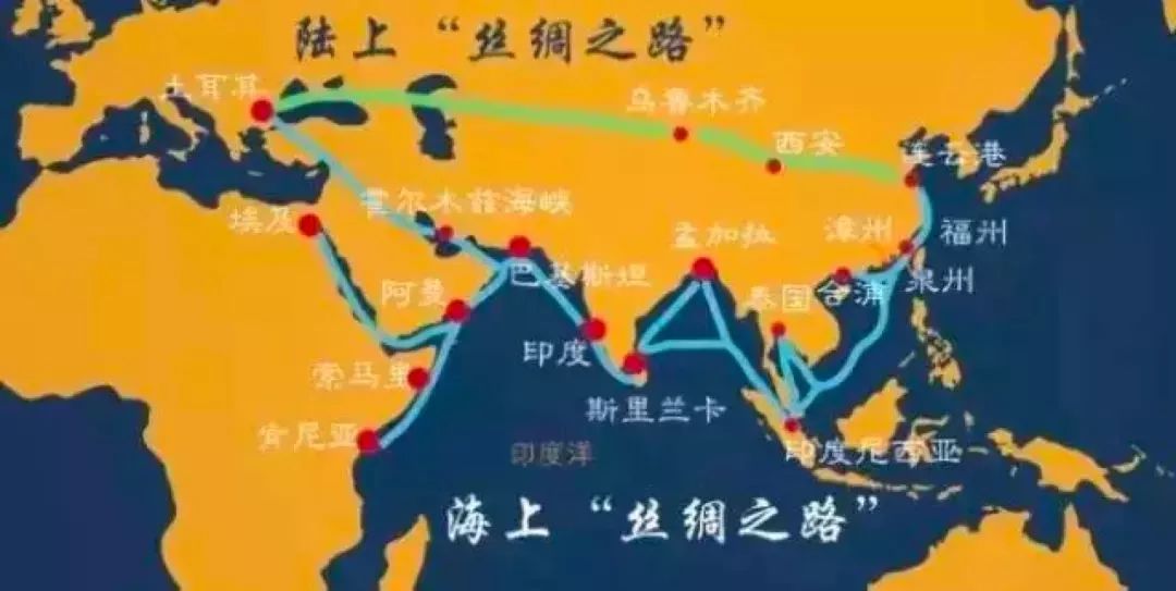 将亚欧非三个大陆整合起来的一路一带战略规划图
