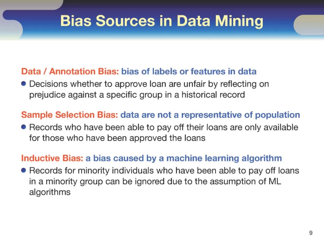 公平性感知机器学习或公平性感知数据挖掘的目标是在分析数据的同时考虑到公平性、歧视、中立性和/或独立性等潜在问题。FAML的两个主要任务是不公平检测和不公平预防。不公平检测任务旨在发现数据库中的不公平待遇。不公平预防任务的目的是学会一个统计模型从潜在的不公平的数据集,这样敏感的特性不会影响模型的结果,其中一个敏感特性表示的信息希望不影响结果,如社会敏感信息或信息,用户希望忽略。