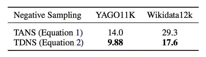 当实验数据包含两部分:YAGO11k 和 Wikidata12k,这两个数据集抽取了 YAGO 以及 Wikidata 中带有时间注释(time annotations)的部分。通过 Link prediction 以及 Temporal scoping 两个实验任务与其它模型比较,实验结果如下: