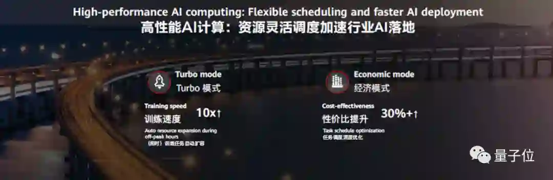 一是Turbo模式,可以充分利用空闲资源加速已有训练作业,在大多数典型场景下加速效率大于80%,训练速度提升10倍,并且不会影响模型收敛精度。