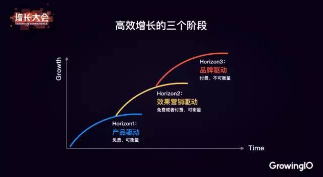 这个增长阶段有几个特点。一是产品驱动,体验为王,专注用户留存度。二是因为它往往代价最低的,同时在数据分析角度来说是可衡量的。