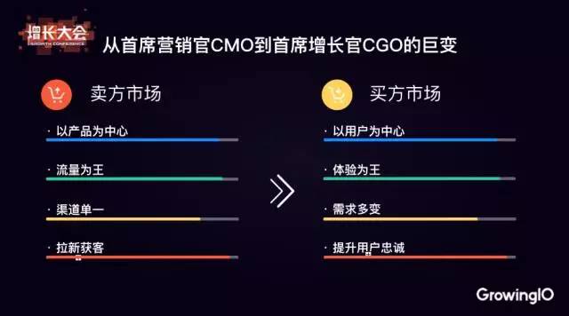 讲这里,并不是建议今天在座的各位嘉宾回去就立刻改变自己的组织结构,设立首席增长官。只是说在接下来的企业运营体系里面,如果不关注客户、不关注用户价值持续的产生、不关注创新、不关注数据、不关注效率的话,这样的企业是不可能获得长久的增长。