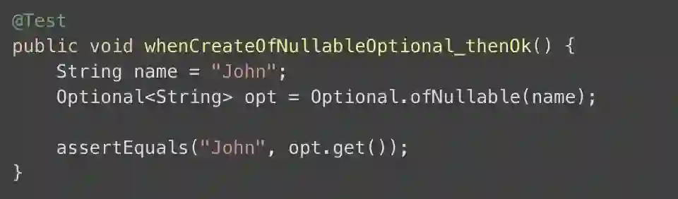 为了简化这个过程,我们来看看用 Optional 类是怎么做的。从创建和验证实例,到使用其不同的方法,并与其它返回相同类型的方法相结合,下面是见证 Optional 奇迹的时刻。