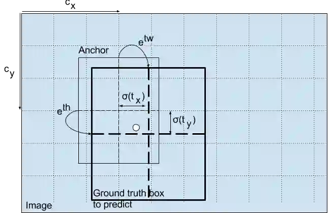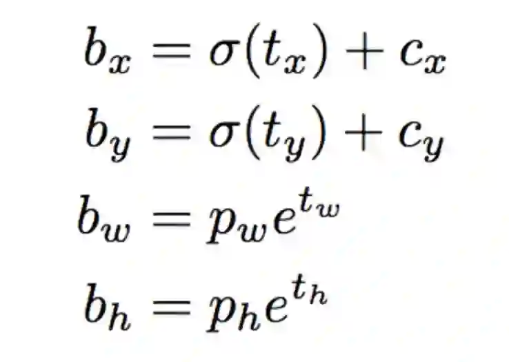 下面的公式描述了网络输出是如何转换,以获得边界框预测结果的。