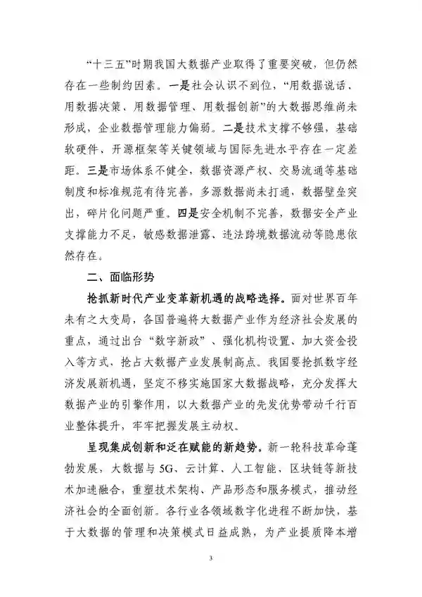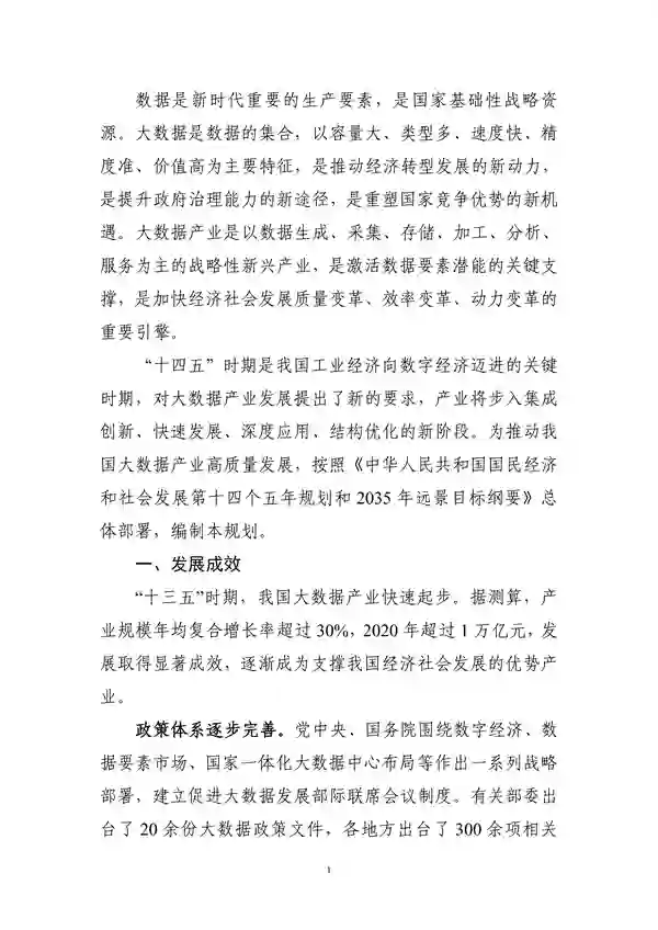 此外,《规划》提出加快构建全国一体化大数据中心体系,推进国家工业互联网大数据中心建设;要引导大中小企业融通发展和产业链上下游协同创新,支持传统企业开展大数据业务剥离重组。