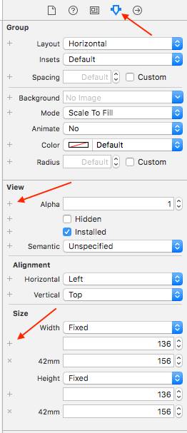 Tip3: 38mm 和 42mm 大小表盘适配,控件属性面板中点击 + 号,即可分别设置。