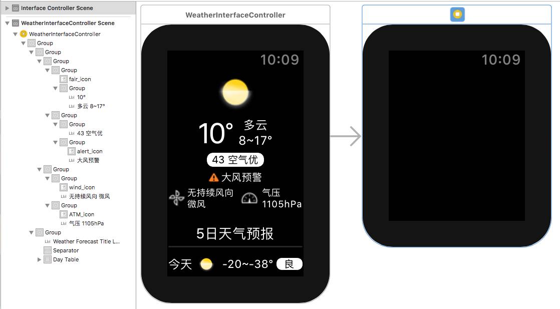 放在 WatchKit App 中的图片可以直接在 SB 的属性面板中索引到并使用,同时也可以用直接使用控件的setImageNamed方法在代码中进行设置[self.image setImageNamed:@"img1"];