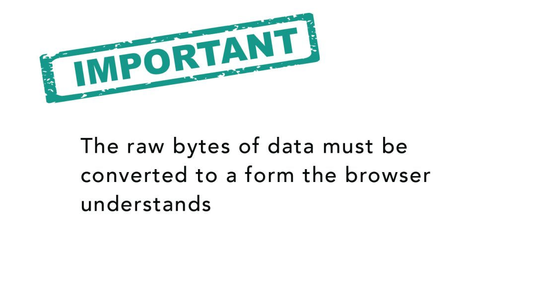 让我们继续。浏览器接收字节数据,但是,它用这些数据什么都做不了。数据的原始字节必须转换为它所理解的形式,这是第一步。