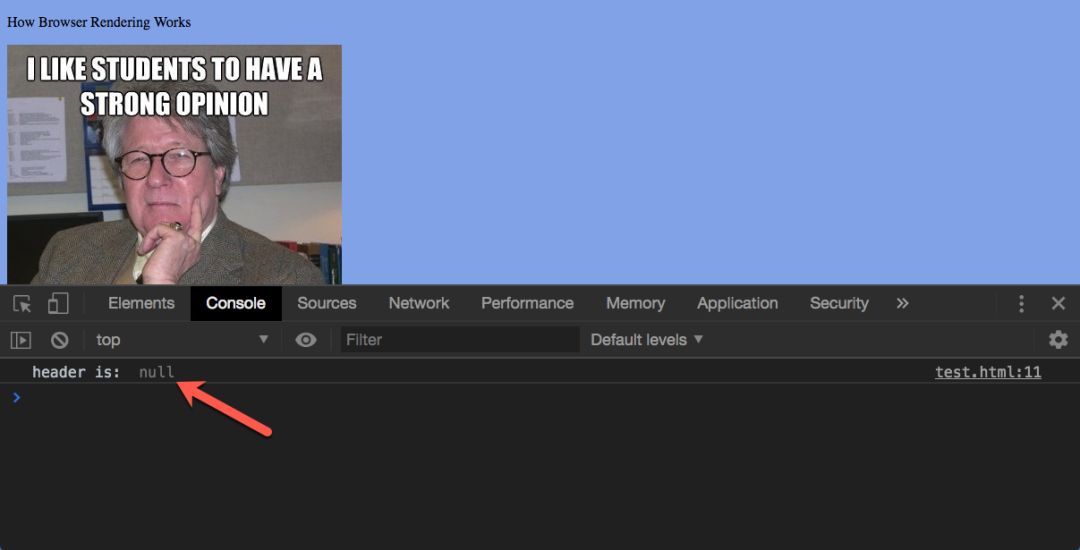 当脚本试图访问一个 id 为 header 的 DOM 节点时,由于 DOM 还没有完成对文档的解析,所以它还不存在。这把我们带到了另一个重要的问题。脚本的位置很重要。
